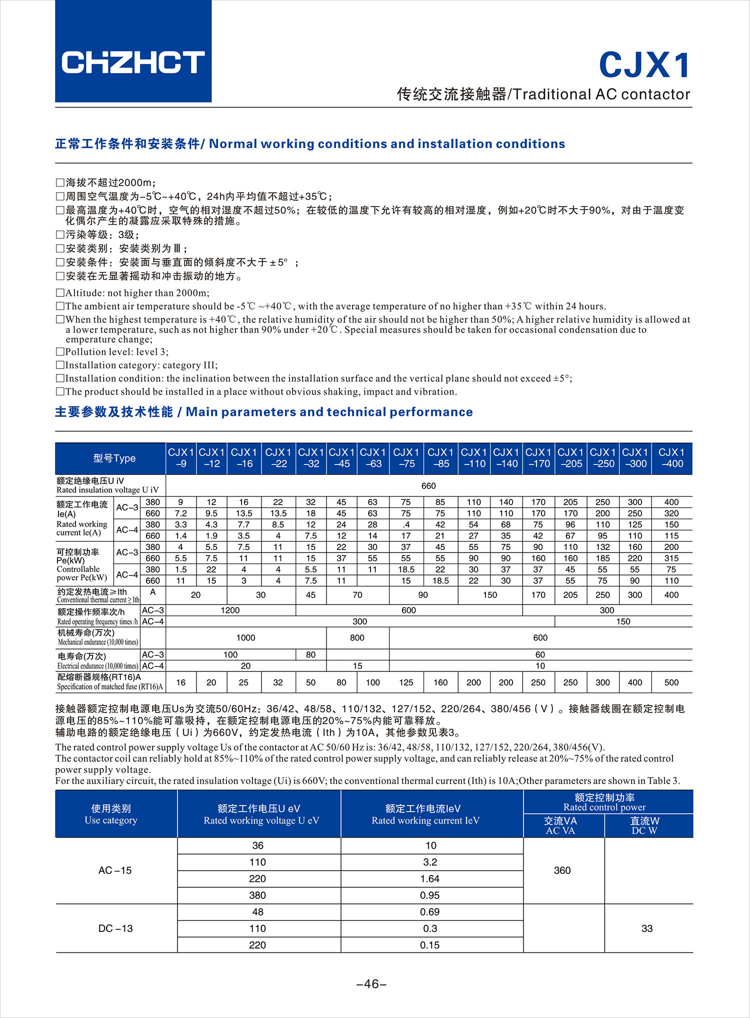 CJX1傳統交流接觸器產品說明書