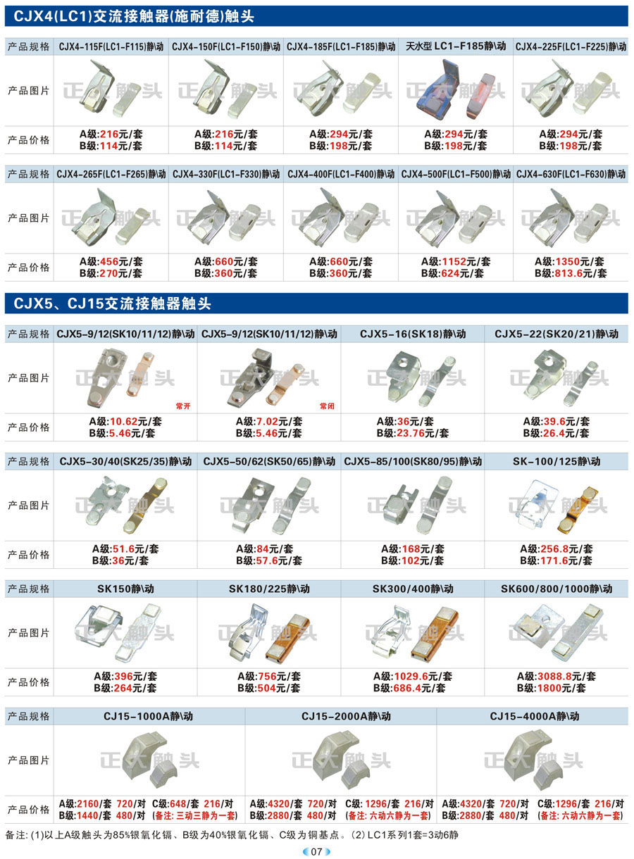 CJX4(LC1)、CJX5、CJ15交流接觸器(施耐德)觸頭