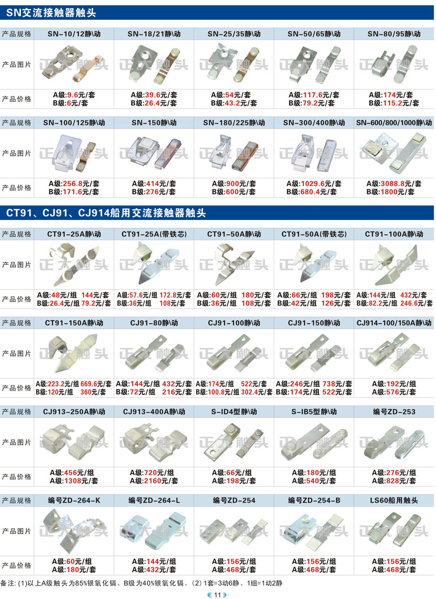 SN、CT91、CJ91、CJ914船用交流接觸器觸頭