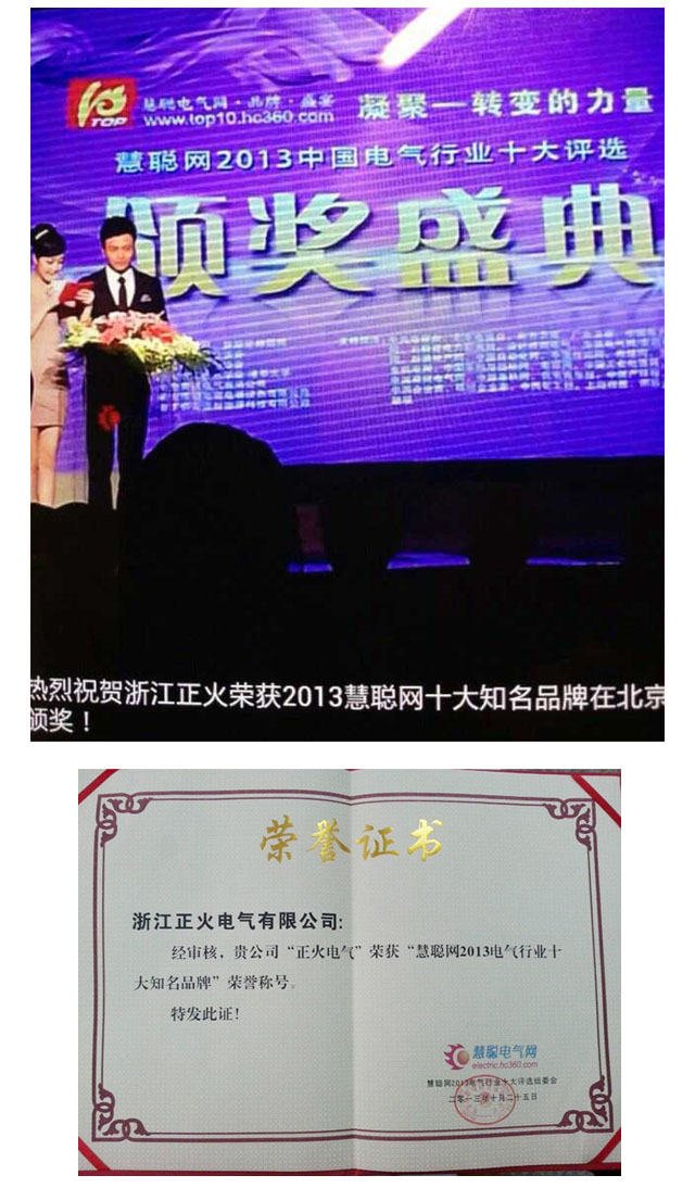 2013年6月25日,由慧聰電氣網主辦的“凝聚——轉變的力量”2013電氣行業十大評選經過啟動儀式、報名、網民投票、專家評審等幾輪大浪淘沙,在一千多家報名企業中“正火電氣股份”脫穎而出,在此盛會上榮膺慧聰網2013電氣行業十大知名品牌,更加印證著其地位和影響力。