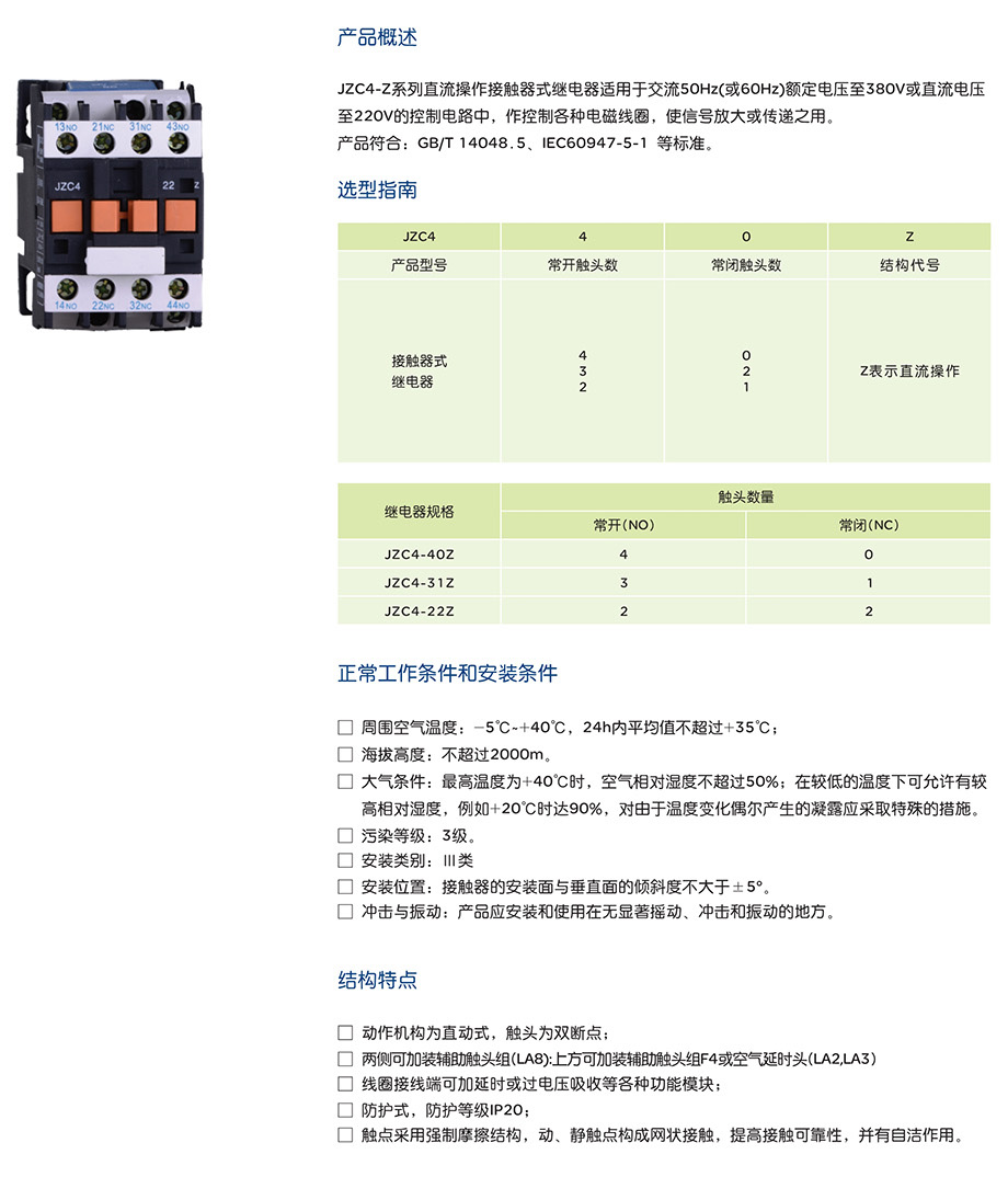JZC4-Z系列直流繼電器產(chǎn)品說明書