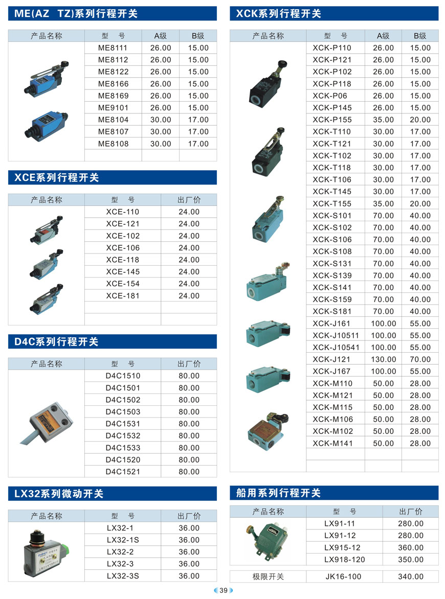 ME(AZ TZ)、XCE、D4C、XCK行程、LX32微動開關