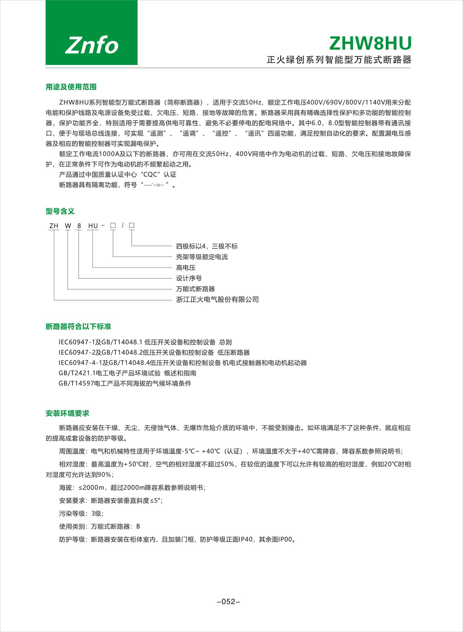 ZHW8HU系列智能型萬能式斷路器產品說明書