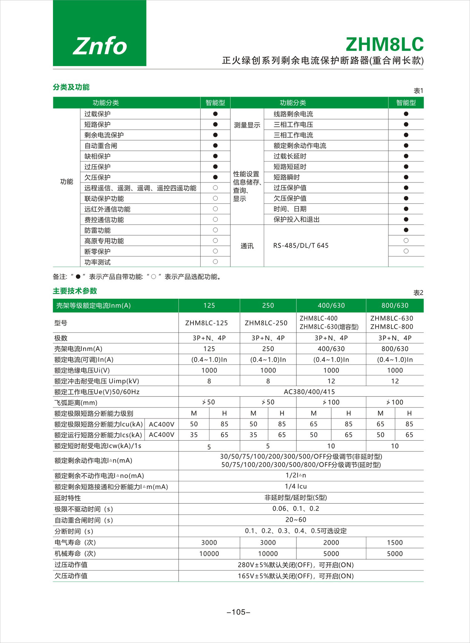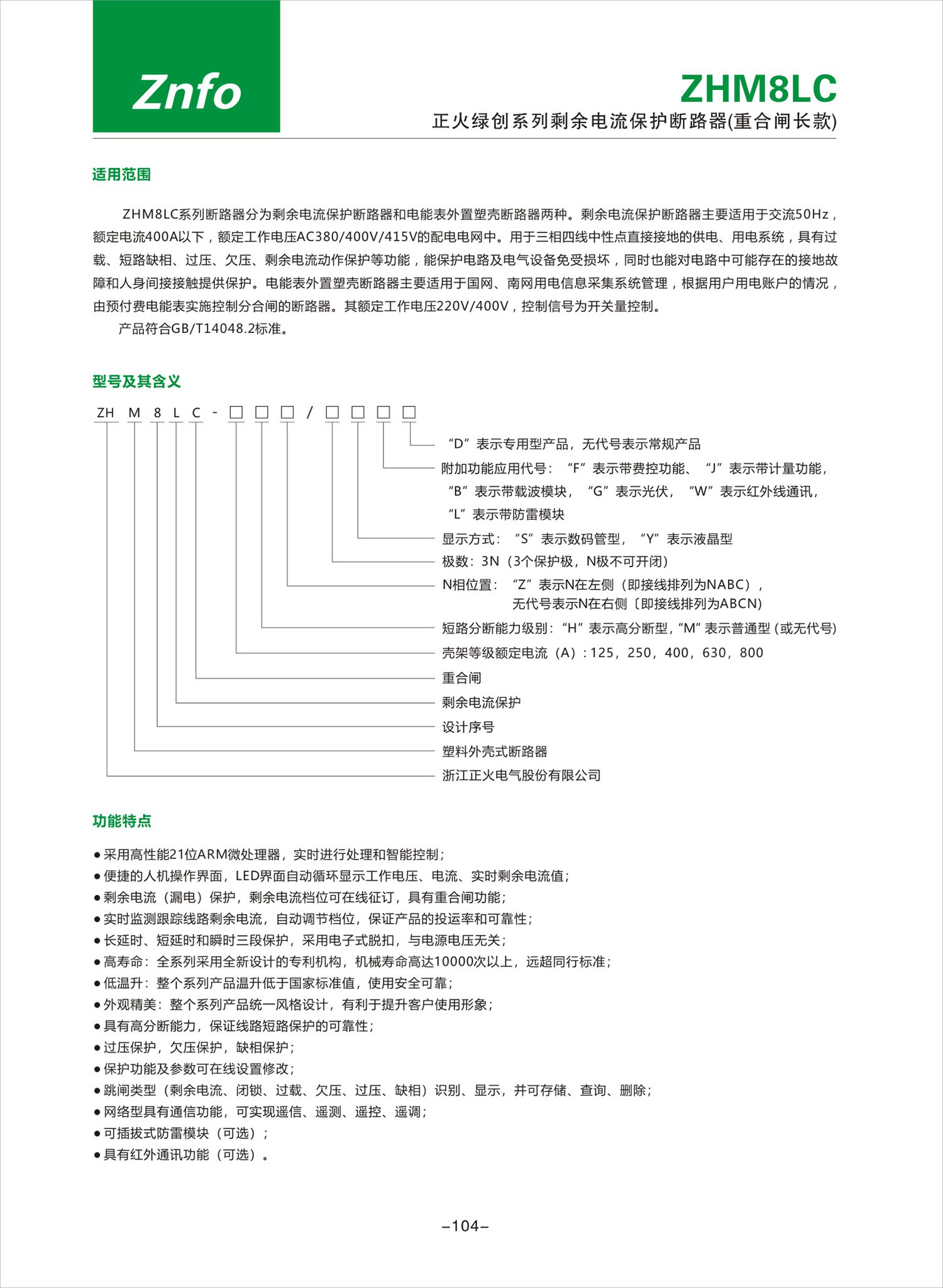ZHM8LC系列剩余電流保護(hù)斷路器(重合閘長款)