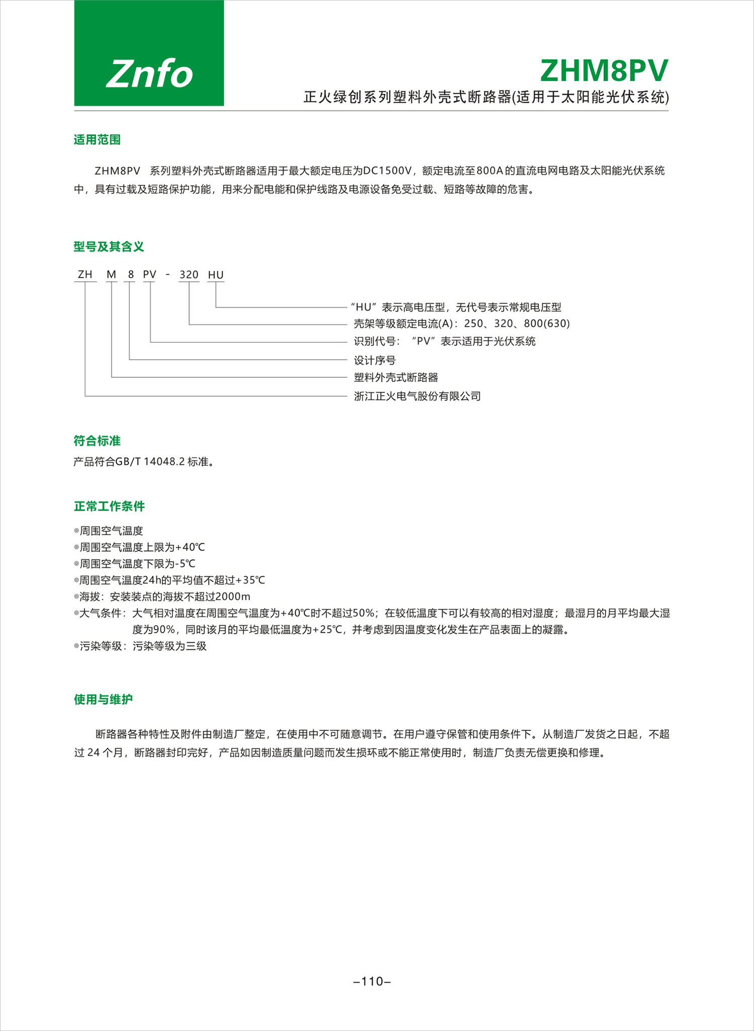 ZHM8PV系列塑料外殼式斷路器產品說明書